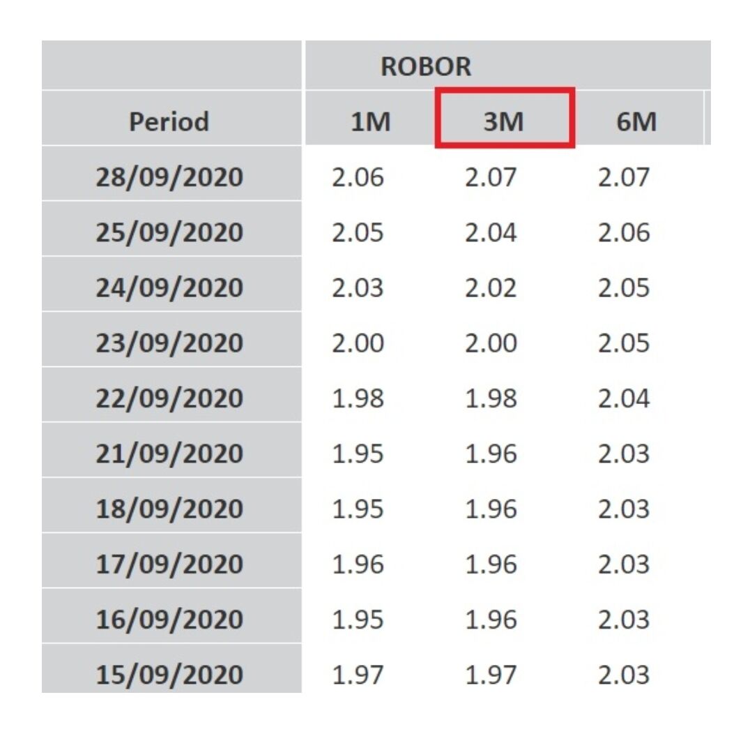 Indicele ROBOR la 6 luni a urcat de la 2,06% la 2,07%.