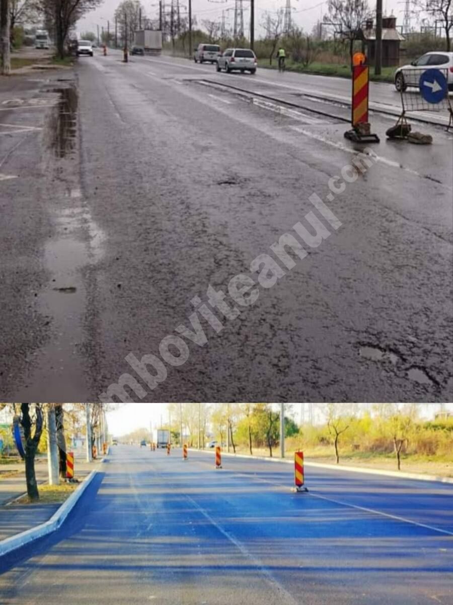 Strada Șoseaua Găesti, după turnarea ultimului strat de asfalt și o alta arteră de acces în municipiul Târgoviște oferă participanților la trafic condiții deosebite de utilizare”, explică primarul orașului Târgoviște, Cristian Stan, imaginile postate, astăzi.