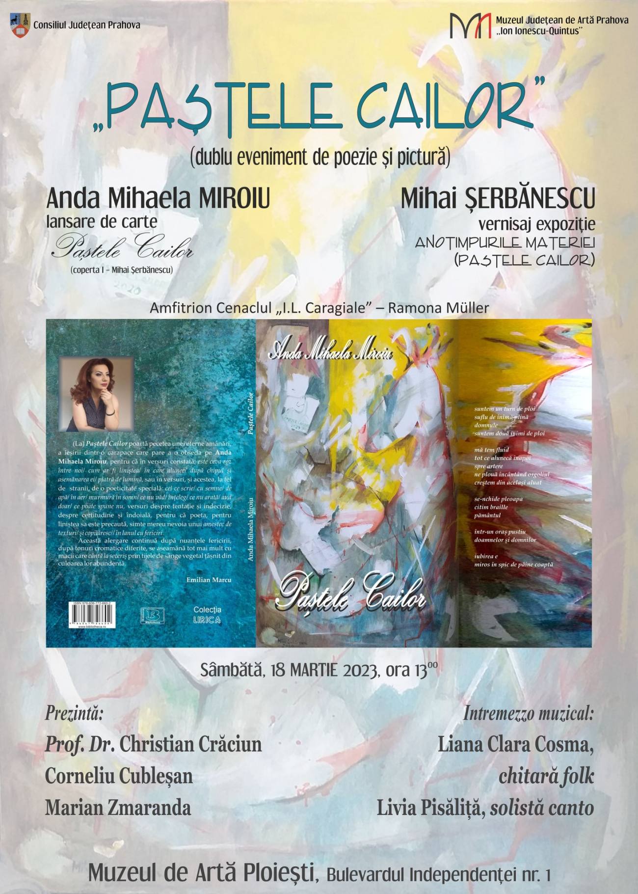 Vernisajul expoziției lui Șerbănescu, „Anotimpurile materiei”, coincide, nu întâmplător, cu lansarea, în aceeași locație, a volumului „Paștele cailor”, ce o are ca autor pe Anda Mihaela Miroiu și care este ilustrat tot de pictorul târgoviștean. Dublul eveniment va avea loc sâmbătă, 18 martie 2023, la ora 13.oo.