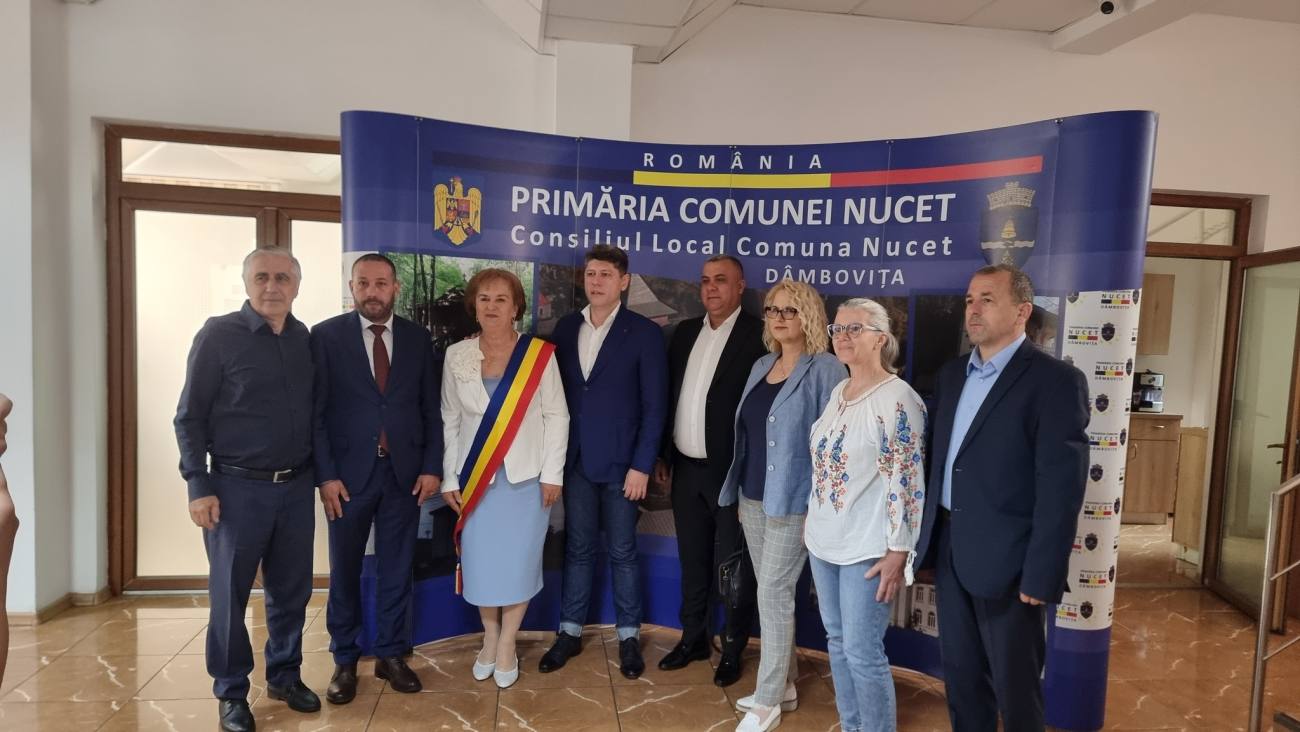 Primăria Nucet a găzduit, în această seară, evenimentul de semnare pentru proiectul „Înființarea și extinderea rețelelor de alimentare cu apă și canalizare în Nucet, Perșinari, Văcărești, Lucieni și Ludești”, în valoare de aproximativ 22.000.000 euro. Acest lot este parte a „Proiectului Regional de dezvoltare a infrastructurii de apă și apă uzată din județul Dâmbovița” și reprezintă încununarea muncii și așteptării de mulți ani a unor comunități cum ar fi cea din Nucet.