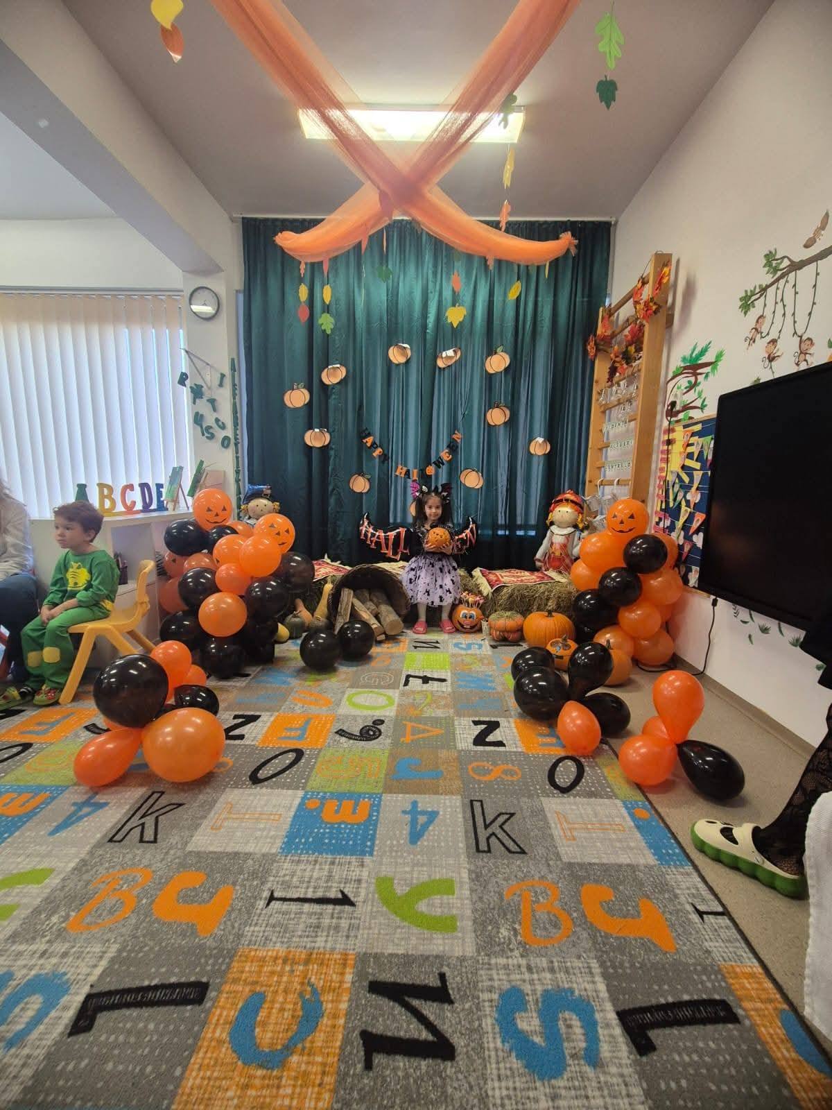 Copiii, alături de educatori și părinți, au pregătit dovleci decorați, costume vesele și decoruri tematice, transformând grădinița într-un spațiu colorat și plin de entuziasm. Activitățile au inclus atelier de sculptat dovleci, jocuri, momente muzicale și activități de dezvoltare a creativității, desfășurate într-o atmosferă veselă și prietenoasă.