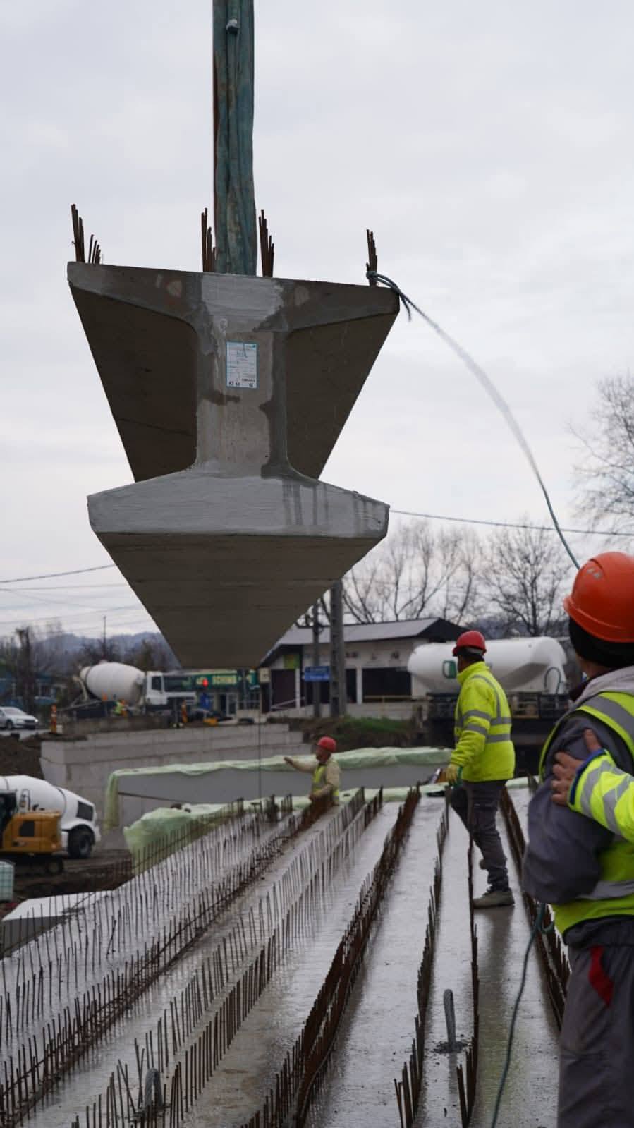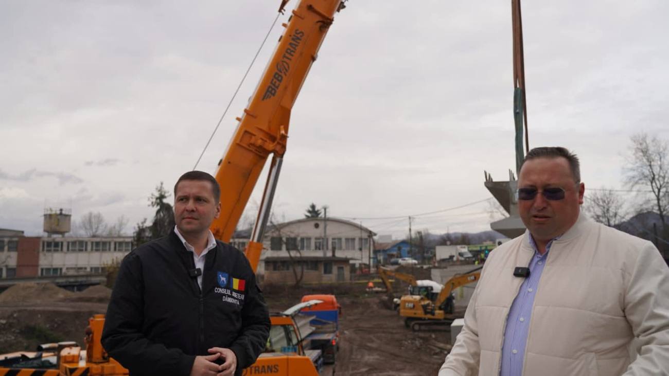 În această dimineață, președintele Consiliului Județean Dâmbovița, Corneliu Ștefan, și primarul orașului Pucioasa, Constantin Ana, au fost pe șantier pentru a verifica stadiul lucrărilor. Potrivit șefului administrației județene, în prezent se află în desfășurare montarea grinzilor, o etapă tehnică esențială pentru continuarea structurii podului și pentru trecerea la fazele următoare ale construcției.