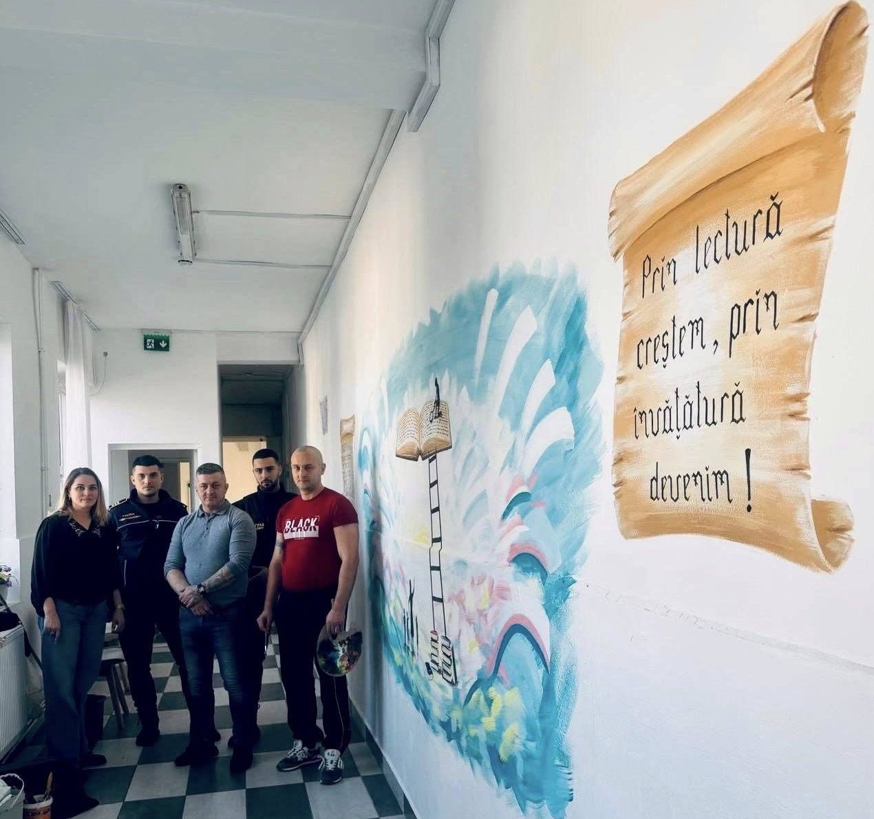 Un coridor al Școlii Gimnaziale „Radu cel Mare” a fost transformat într-un spațiu dedicat educației și speranței, printr-o lucrare murală realizată de o persoană privată de libertate din cadrul Penitenciarului Găești. Demersul a fost coordonat de specialiștii din sectorul Reintegrare Socială, în cadrul unui proiect care urmărește implicarea persoanelor private de libertate în activități cu impact pozitiv în comunitate.