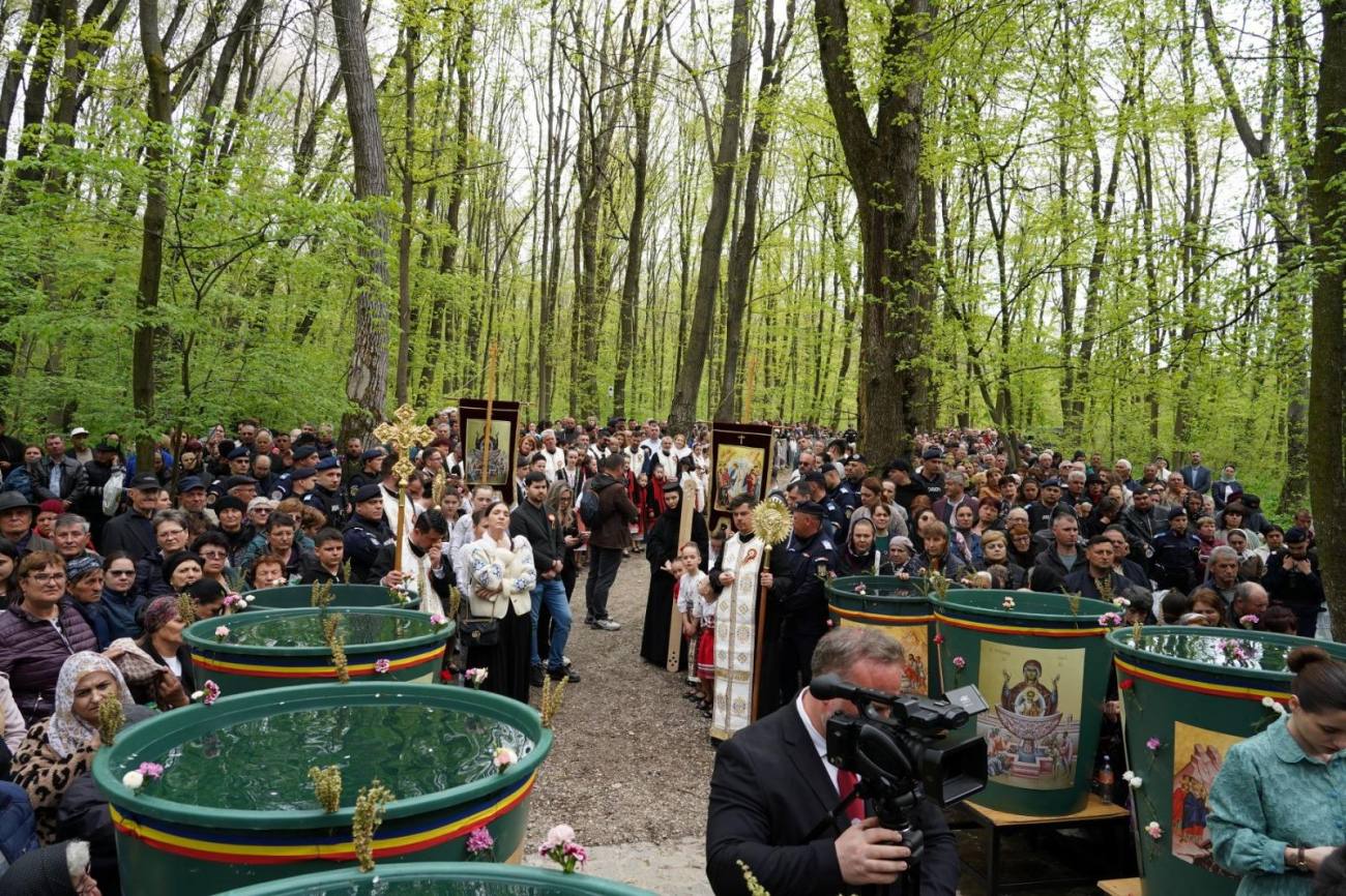 Conform tradiției îndelung împământenite, s-a mers apoi în procesiune către pădurea din apropierea mănăstirii, la cunoscutul loc „Fântâna de leac”, unde Înaltul Ierarh a săvârșit slujba de sfințire a apei și a binecuvântat pe cei prezenți.
