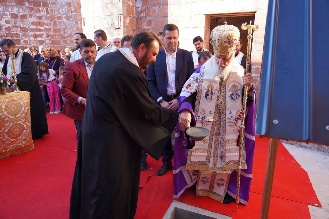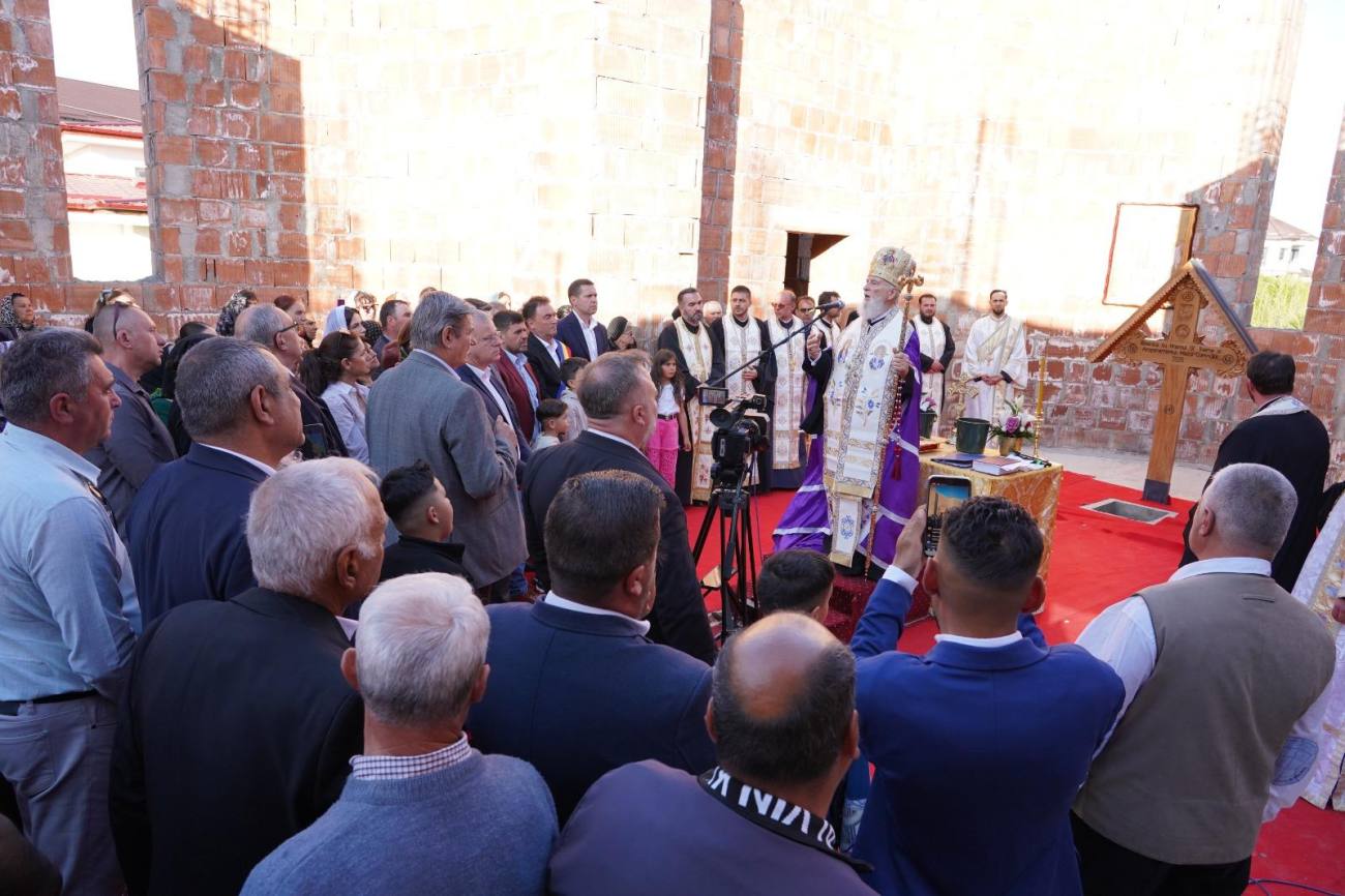 Înaltpreasfinția Sa a evocat, în cuvântul său, importanța zidirii unei noi biserici, care reprezintă o adevărată „casă a lui Dumnezeu”, precum și o „boltă către cer”, subliniind că, atunci când se sfințește locul pe care se construiește biserica, acesta devine un spațiu sacru, unde se realizează întâlnirea dintre pământ și cer, dintre timp și veșnicie, dintre credincioșii de pe pământ și cei din ceruri, spre slava Sfintei Treimi. Chiriarhul nostru a aprofundat, într o manieră catehetică, semnificația hramurilor pe care le va purta noul sfânt locaș și a explicat înțelesurile teologice ale învățăturii despre Sfânta Treime și despre Maica Domnului. Totodată, a subliniat faptul că Biserica este cea care a susținut, de a lungul istoriei, aspirațiile poporului nostru și i a conferit o frumoasă și nobilă identitate spirituală; de aceea, Ortodoxia este cu adevărat „mamă a neamului românesc”. Astfel, zidirea unei biserici reprezintă un moment de bucurie și solidaritate pentru orice comunitate locală, îmbogățind patrimoniul spiritual național și contribuind la aprofundarea unității și comuniunii dintre credincioși.
